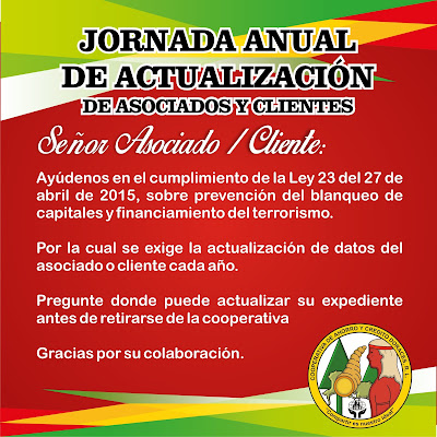 Cooperativa de Ahorro y Crédito Doraces, R.L. se encuentra en a Jornada anual de Actualización de datos de asociados y clientes, no olvides al visitrnos preguntar por tu actualización.